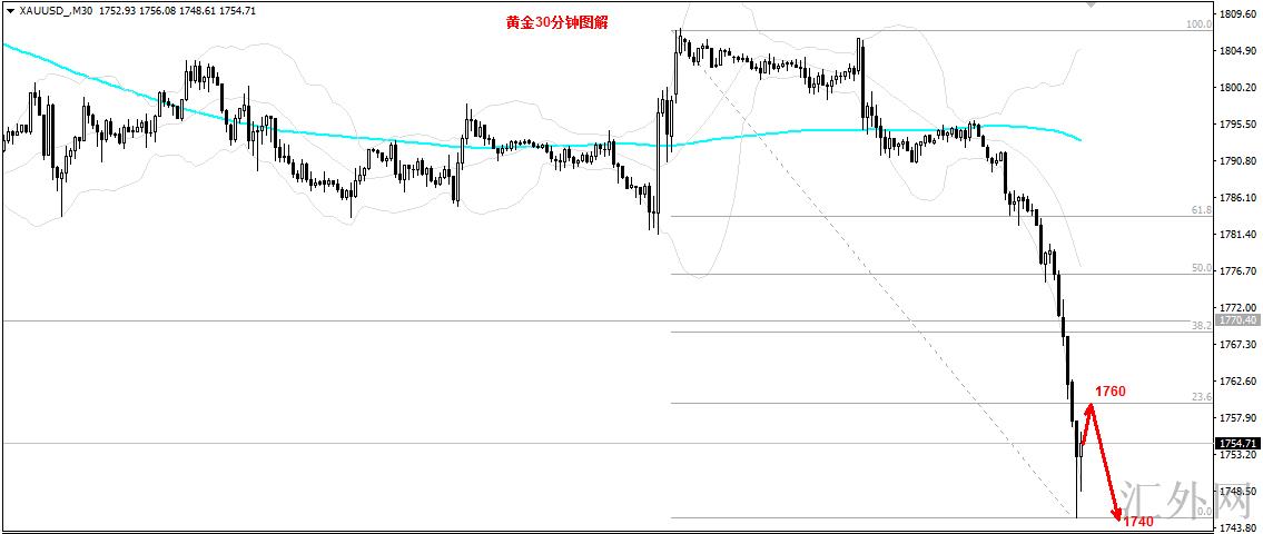 黄金单边痛跌,今日空单按计划抵达1750,同期突破1750,超标完成计划!
