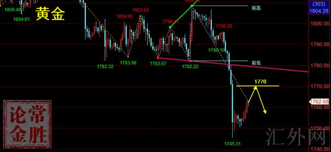 常胜论金9.16夜里布局:黄金在1770一线空,1750止盈,获利20个点出场
