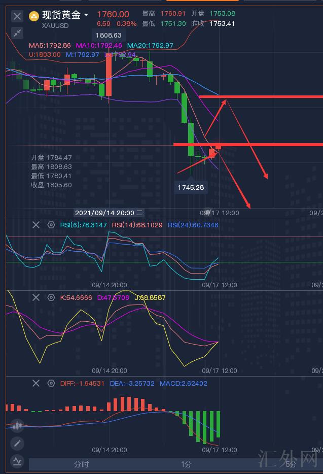 9.17黄金策略:1、激进派1760左右买跌;2、稳健者1780-1785买跌!