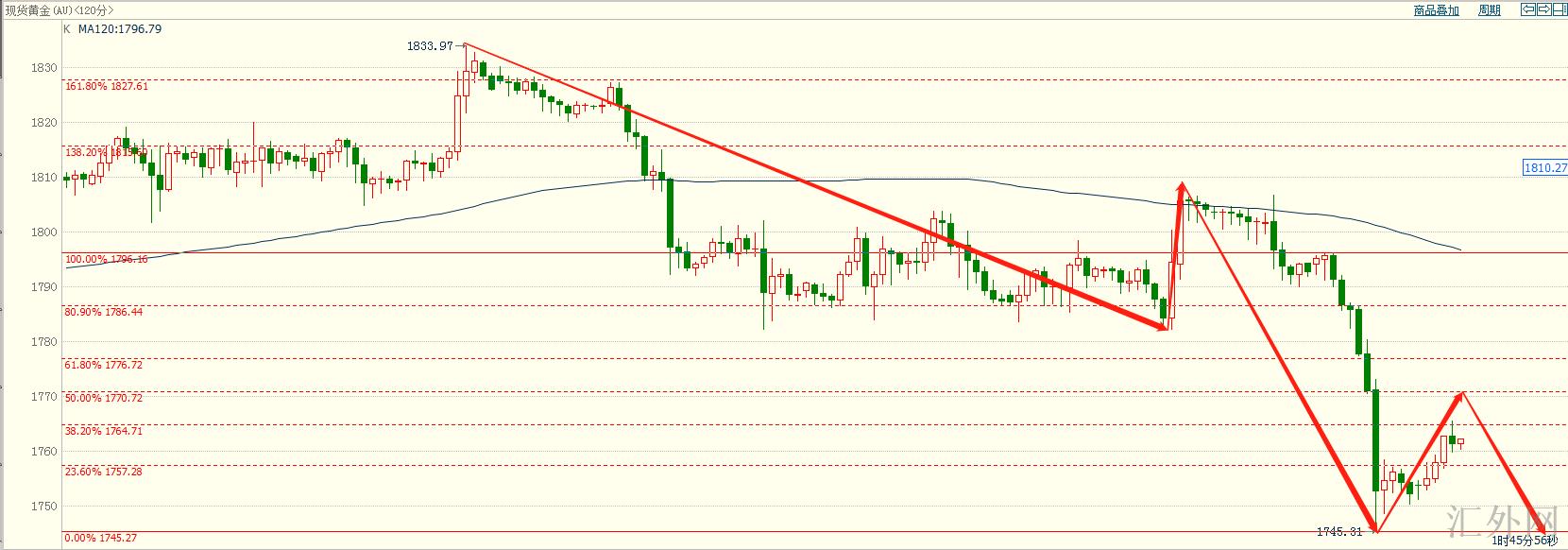 黄金昨天美盘时段历经了卖方猛烈的下探行情,日降幅高达了50美金附近的区域,日间首要针对前一天的下探执行修复,日间的回弹高达了10美金附近的区域,对于卖方的猛烈下挫举动买方显得稍微无可奈何。无论日间黄金如何的回弹黄金的下探已成定局,在如此双方力量失衡的情形下,我们依旧优先选择顺势而为,夜里也将给出逢高买跌的思路,推荐等候价格回弹至黄金分割50%的位置1770一线空单介入,风控点放置1775上方,计划位目睹1762~1755。(博易大师报价,鑫顺波浪理论)图片是黄金2小时图