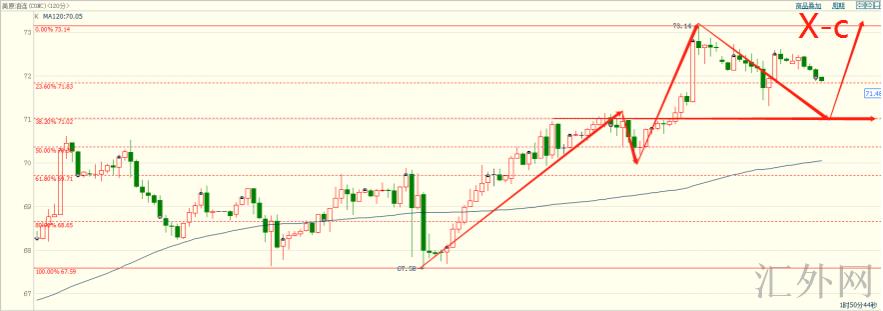 亲情爱情,情系佳节。家园月圆,圆满中秋。图灵团队在这里祝大家里秋快乐。接下去进入今天的主题,原油这两天处在逆势调动当中,图灵在下午给出的空单,当前仍在获利持仓当中,我们在71.00这一计划位等候收割这段回调调动利润。从波浪结构来说,整体依旧处在X-c浪上升当中,所以依旧要以顺势买涨为主。夜里规划价格回调到黄金分割38.2%与前期平台上沿共振支撑点一线,斟酌多单介入,参考点位70.80一71.00买涨,风控点放置70.50以下,计划位目睹71.70~72.00。(博易大师报价,鑫顺波浪理论)图片是原油2小时图。