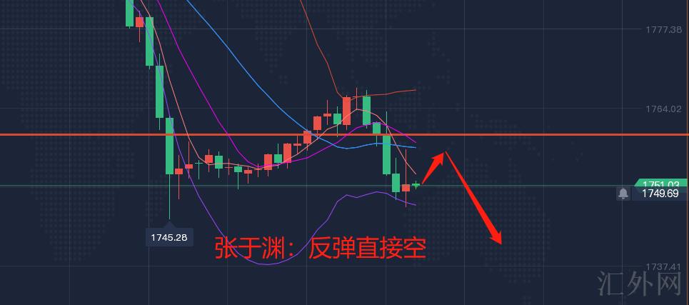 夜里关注支撑点1745一线,这也黑色星期五必然突破的,夜里在1760现价空按计划进场了,从4小时图来说,触碰15均线处开始回撤,大势仍是卖方,k线持续下探到1750左右,卖方达到接连收割,黄金小时线已经看不足k线了,跌的只能用天文望远镜看了,上方压力位从1770一线下探到1762一线,高位持续的下滑,两点一线显著的朝下倾斜,死叉是显著的,夜里空军到来,做好准备,MACD能量柱也是逐渐向零轴靠近,这是显著的下跌趋势。