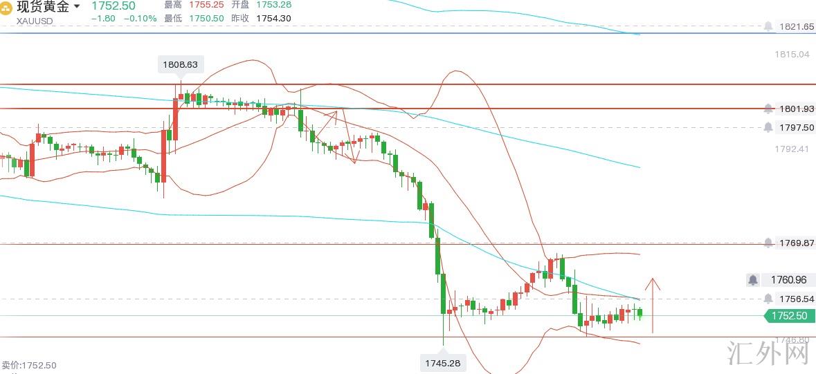今日黄金上方阻力1768,以下支撑1745,操作上先以抵多为主,黄金从1808下挫到1745,星期五回弹1767左右遭遇阻力回调二次摸底,最低1747一线,这周有美联储会议,那么星期一-星期三大约会走区间震荡,当前关注区间1745-1770区间抵多高空即可,今日黄金回调1750-48一线多,向上瞧1766即可;上方在1770或者1775斟酌做一次空;