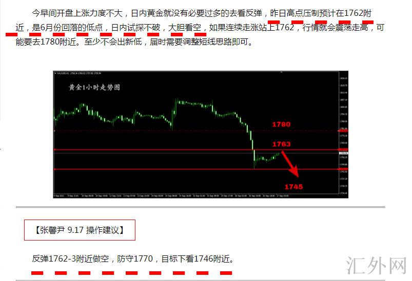 张馨尹:9月20号 黄金按计划下跌趋势不止 短线1770以下持续看跌