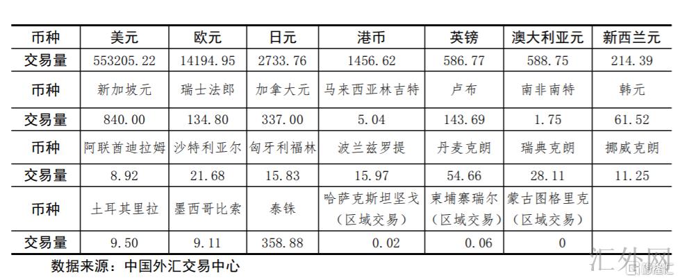 表3:2020 年银行间外汇即期市场人民币对各币种成交量(单位:亿元)