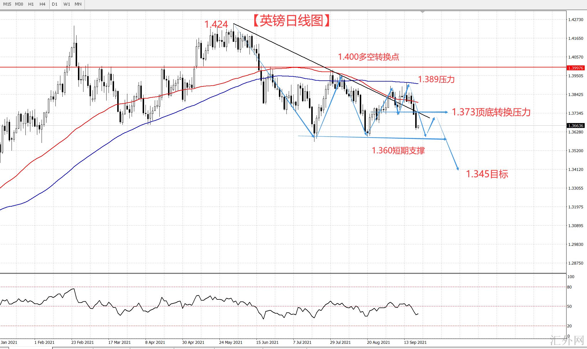 所以对于此次美联储利率会议,我们只需求关心的就是美联储什么时候缩债就行,只要给出清晰的时间表,那么美元下一次的推涨也就马上开始了,英镑也就可以顺遂的持续空了。