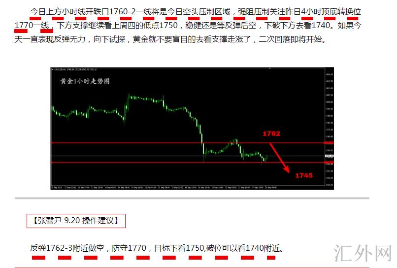 张馨尹:9月21号 黄金低点震荡 日间回弹1767后续看回调