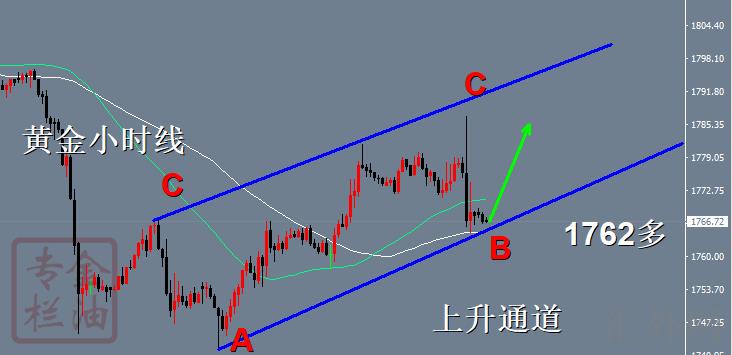 隔夜黄金受美联储利率会议的影响,买方任然不变,黄金价格持稳1762上方,这是买方的底线,日间持续低多为主,回调1762持续多