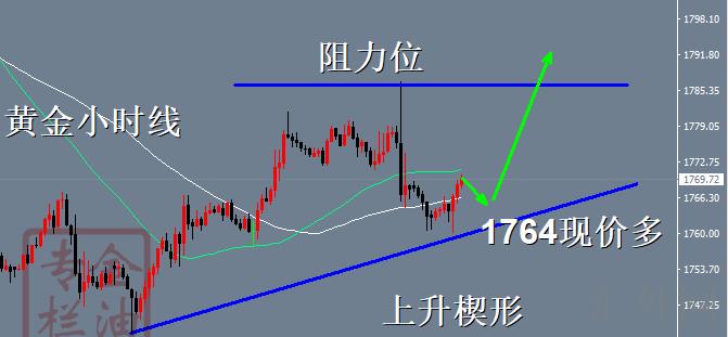 黄金小时线一直提及的是1760上方均为多,市场回调这是给进场多的可能,不是掉头朝下,除非破支撑点,否者一路多,80均线朝下倾斜直接被摁下暂停键了,掉头往上了,k线踩着50均线上,接连收线大阳线,多,1764现价多了