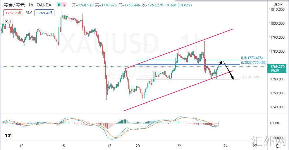 黄金现货:最高1787, 最低1764,日间升幅 -0.35%