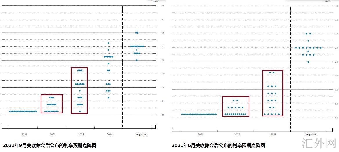 随后,点阵图表明许多票委支持2022年开始加息(18名中的9名),预期2022年起码加息一次,而6月FOMC会议时这一数字是7人。