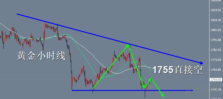 黄金小时线上方压力位任然强劲,日间任然未能冲出压力位1762一线,这也多空必争之地,这个点位说了无数次,今天又一次说一下,当前50均线以及80均线持续朝下运行,没有掉头往上,也就是显著的死叉,两座大山摆在k线面前,直接火力抑制,空,1755现价空