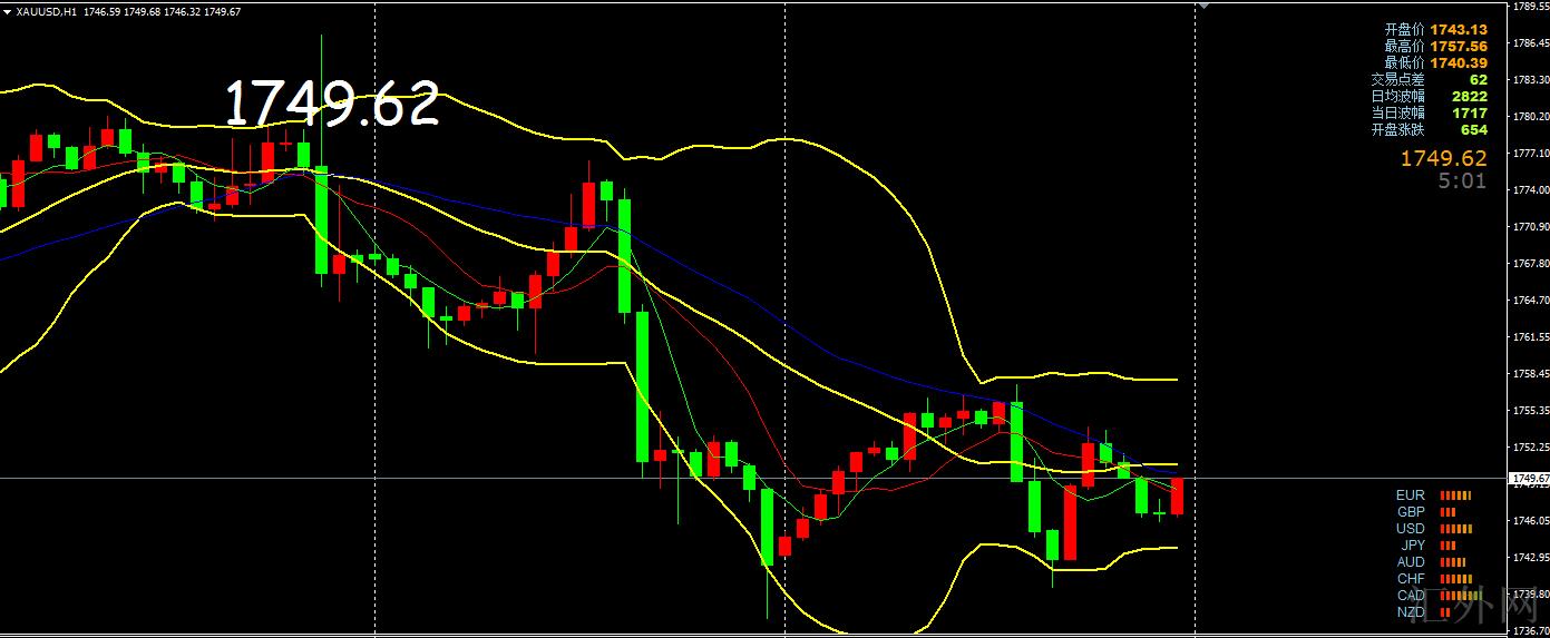 星期五(9月24号)黄金开盘就一直走慢涨的行情,欧盘黄金最高涨到1757一线后开始回调,美盘最多回调到1740关键点位,随后再次适当回弹到1753,收盘于1750一线,日K线收了一根小阳线,整体来说黄金走了一天震荡行情,对于后市黄金来说尽管星期五并没有跌穿前一个交易日的低位1737,但是也没有迈出一个比较强劲的回弹,所以依旧有持续下探的机会。