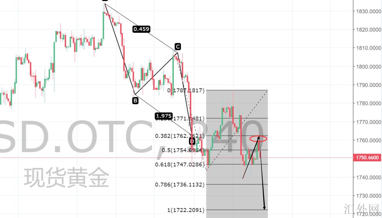 你们记得这个图表,这是我做二次ABCD双重结构的预计,前期的D点1762你们都知道,今天黄金很讨巧的回撤到了这个水平左右,而且,利率会议阶段还回撤到了B点水平,在该种完全满足结构看空的条件下,我真的必须去看1720点左右的计划,即使在这之上有37,有40,但这些位置依我看来,包含行情创造的形态需求来说,均为要去破而且刷新新低的。