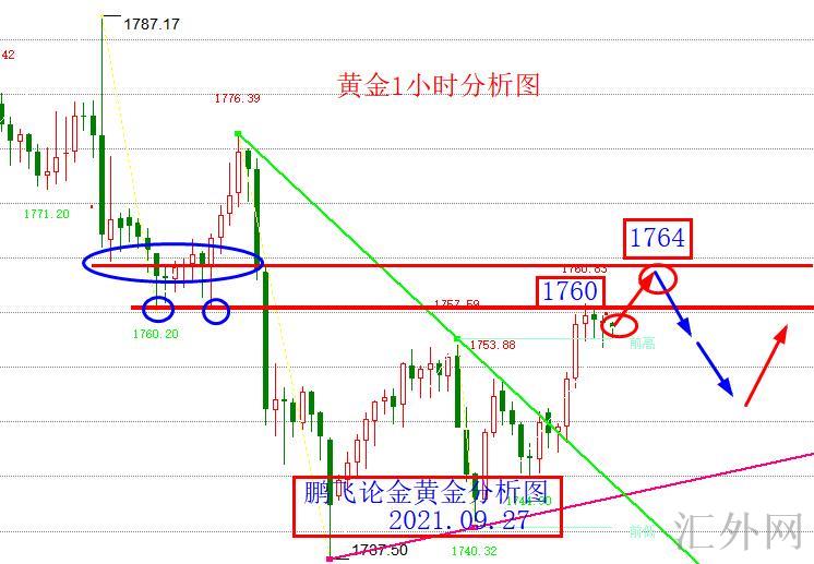 亚盘一开盘买方就一路上冲,1745一路上冲到了当前的1760,从形态向上瞧1H形成了小双底,这段回弹我们需求在1H上方找强阻力,1760是1H的阻力,1764也是形态阻力,1764依旧日K线的10日移动均线抑制位置,也是4H的均线抑制位置,白盘我们着重关注这个位置的得与失,鹏飞论金觉得价格在1764以下卖方思路都不用更改,而且这个位置也是卖方反扑的好位置,以下买方反扑的位置是在1742-1737一带。支撑1742-1737,阻力1760-1764,超级强阻力是在1780,盘面的强弱分水线在1764。