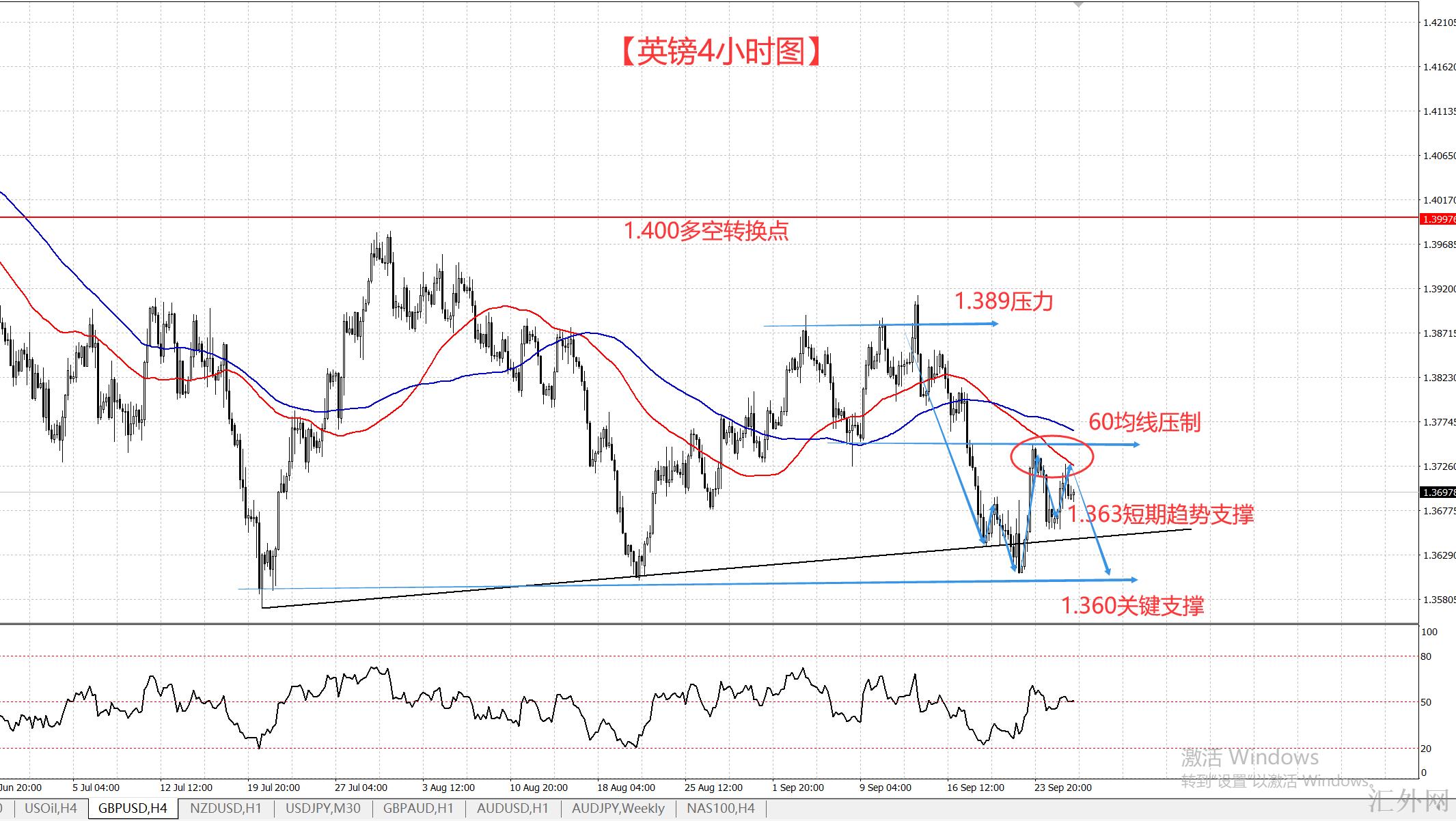 英镑短时间内的行情亦是这样,4小时结构表明,上一个交易日的英镑又一次回弹试探了1.372,但是并没有保持上涨,而是在60日移动均线的抑制下更深一步回撤,尽管当前还没有显现大幅下挫的情形,但是也足够表明英镑的弱势,然而依旧要注意1.360的支持,毕竟这个价格已经先后反转了多次,上方阻力只需求注意1.373就行了,只要依旧在这个价格以下,那么一旦展开下探,并又一次击穿1.360的情形下,那么1.345迅速就能给到了。