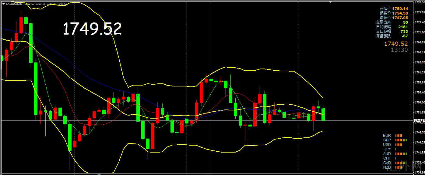 星期一黄金现货窄幅横盘,收盘上涨0.06%,报得1751.43美元每盎司;今日亚盘开盘回弹上升,当前在1749左右震荡。四小时图来说,布林线开口缩减,以下支撑在1740左右,上方抑制在1767-1770左右。一小时图来说,布林线开口持续缩减,MA20以下支撑在1744左右,上方抑制在1767一线。昨日下探试探1744左右支撑,今日亚盘下探1747左右,综合来说,今日黄金交易参考高空低多。