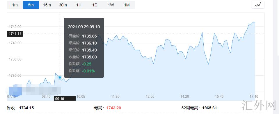 星期二黄金现货早盘行情乏力,美盘前刷新日低1727美元每盎司,美盘适当回涨,最终收盘下跌1.05%,报得1733.94美元每盎司;