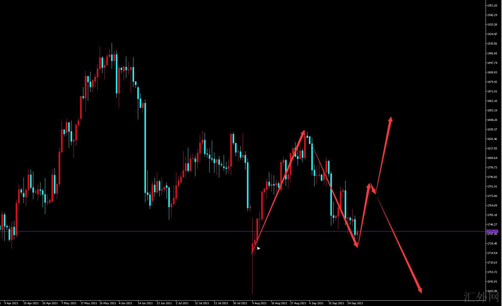 现价1736—1731分批买涨,止盈1750—1760,止损分界线
