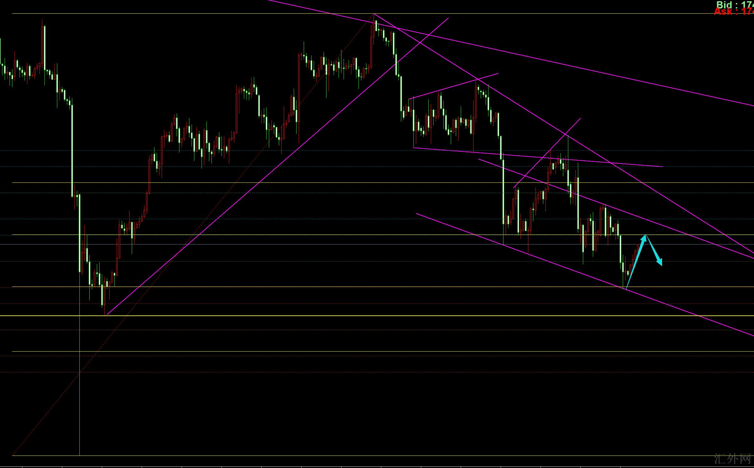 夜里:1745空损51,二是1747-48.5空,防守55,下看38.5-37突破看33-31.至于低点的空着重注意1738这里,假使不破高点的出一半,低点的干掉可以扯平,如此退可守,进可攻,假使直接朝下击穿37哪到34-31再斟酌出。