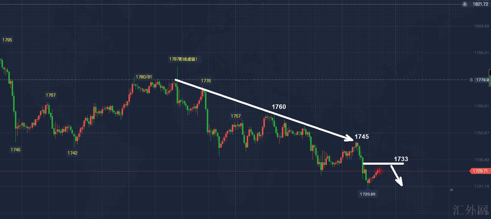 昨日回弹后面依旧回调,那么依照回弹行情过后,回调依旧在核心位置阶段,对二次买跌能否有异议,而昨日我们给出的1739左右的空,在不少人觉得行情还要回弹的时机,我们依旧坚持我们的思路,为主的趋势下挫预计,依旧布局空单思路,夜里顺遂下探,之到23点附近低点刷新1725左右,我们提示退场处理,一次利润点14美金附近,其次在回弹过程中对卖方迟疑怀疑立场的,我们不做过多解释,一设在趋势规模内清晰方向,坚定方向后面不轻易更改。