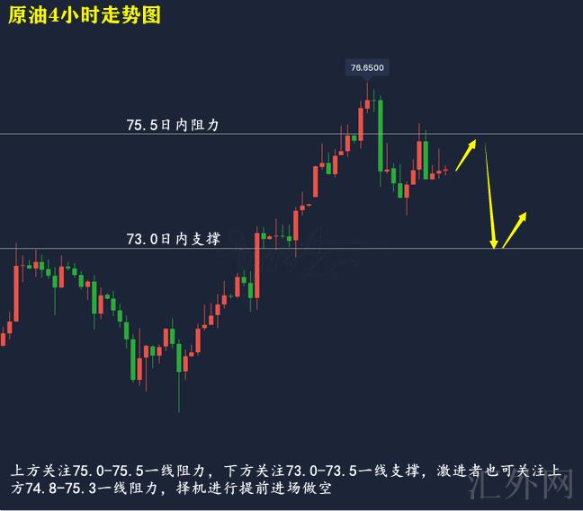 回弹75.0-75.5左右买跌,止损0.5美金,计划看73.5-74.0左右;