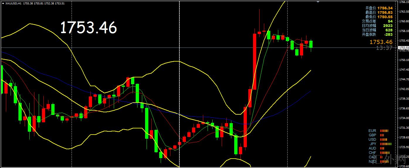 从日K线来说,接连两个交易日收阴后面,隔日收取一根大阳线,收回这周多部分失地,布林依旧朝下开口,中轨于1770美元每盎司形成短线*,伴伴随黄金价格的回弹,MA5/MA10开始走平运行,附图指标MACD死叉三次放量后面势能减弱,RSI聚合往上发散后面走平运行于40/50区域,KDJ聚合往上发散,VOL能量减弱,日K线卖方依旧占优,但势能有所减弱。