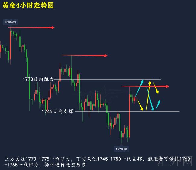 回弹1770-1775左右买跌,止损5美金,计划看1750-1755左右;激进派依托1760-1765一线压力,择机遇阻情形先空后多。