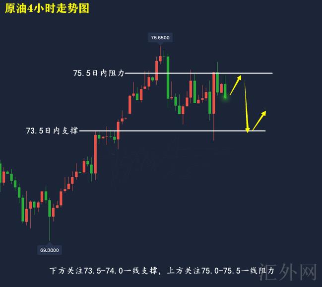回弹75.0-75.5左右买跌,止损0.5美金,计划看73.5-74.0左右;