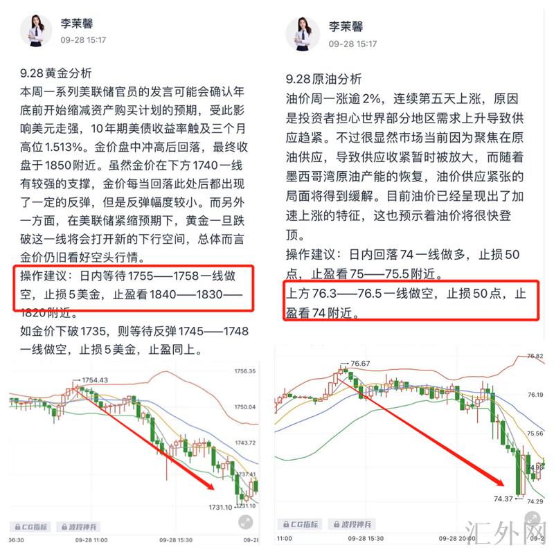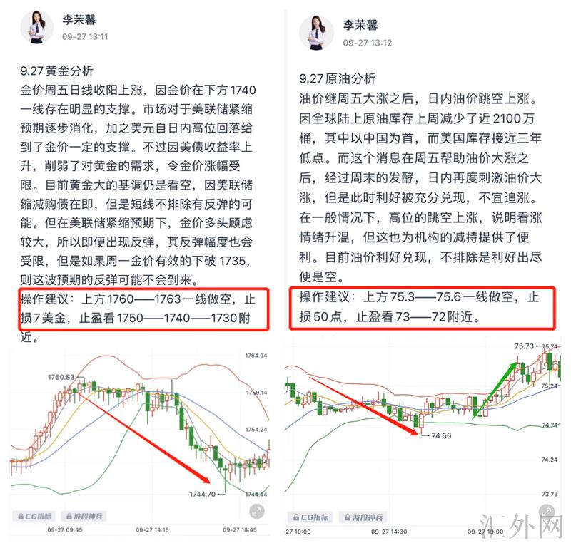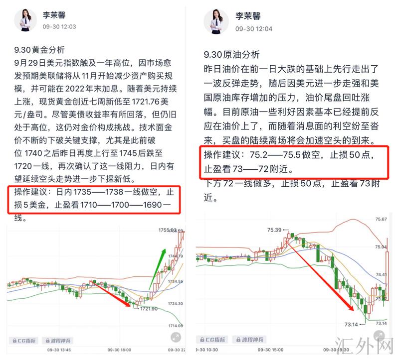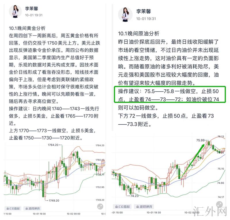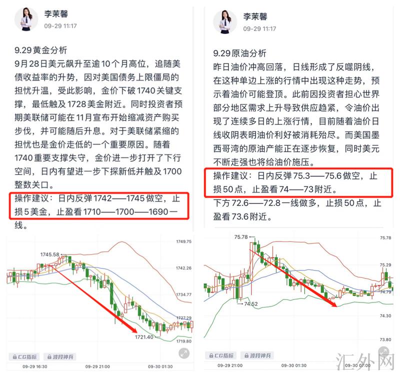 星期三黄金依旧保持看跌思路,茉馨盘中给到回弹最高点1745空单完美入场,成功斩获20多点的利润;原油夜里也又一次强调了75上方看跌思路,轻松获利10多点利润!(止盈30点)