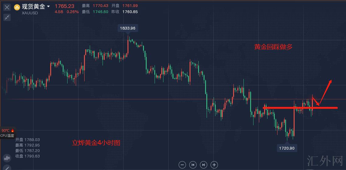 星期一黄金亚盘给到1761-1762的空单,黄金底部1749止盈退场,美盘黄金大涨,回踩买涨。
