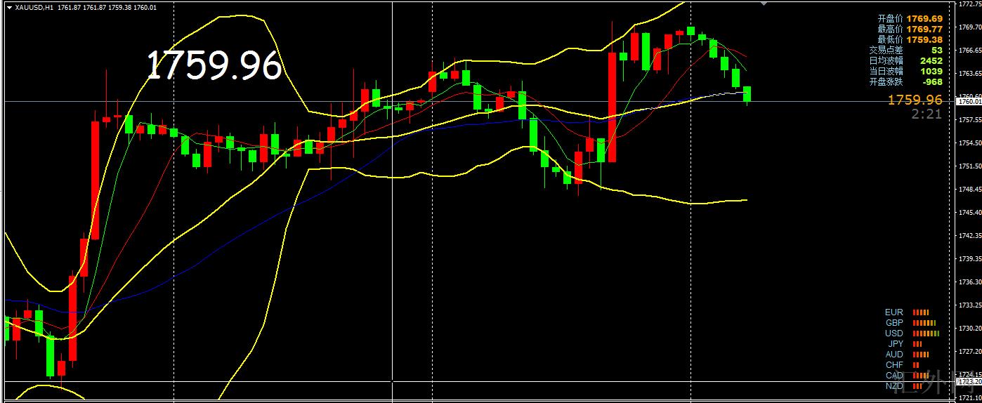 昨天的行情上面,行情开盘1765的位置遇阻开跌,最低到了1747的位置,随后又一次的保持大幅回弹20多美金,最高到了1770的位置调动。