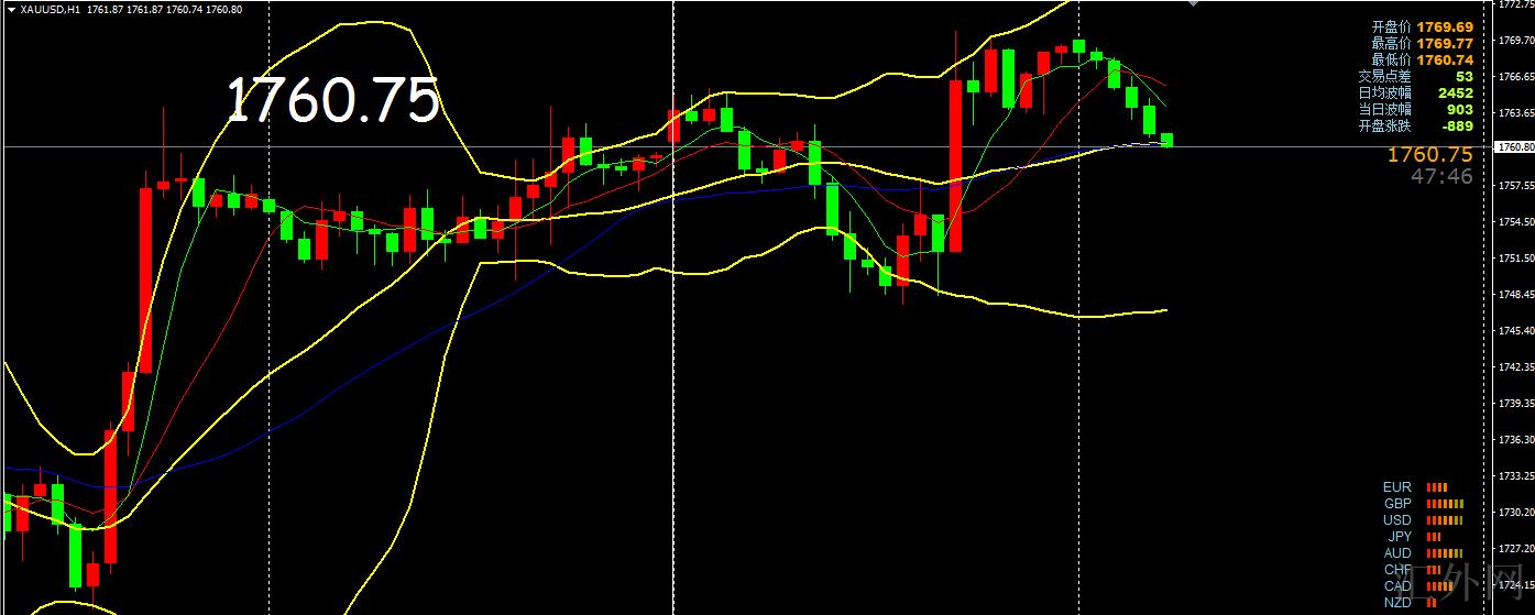 黄金星期二早间开盘开始短周期下挫,当前承受布林带中轨的支持,早盘仍有持续下挫的强度,更深一步目睹1755的支持点,4小时图中,黄金往上击穿下滑趋势通道,选择逢低买涨为主,档位线的支持点置在1755上下的位置。综合来说,今日操作上低多高空参与即可!