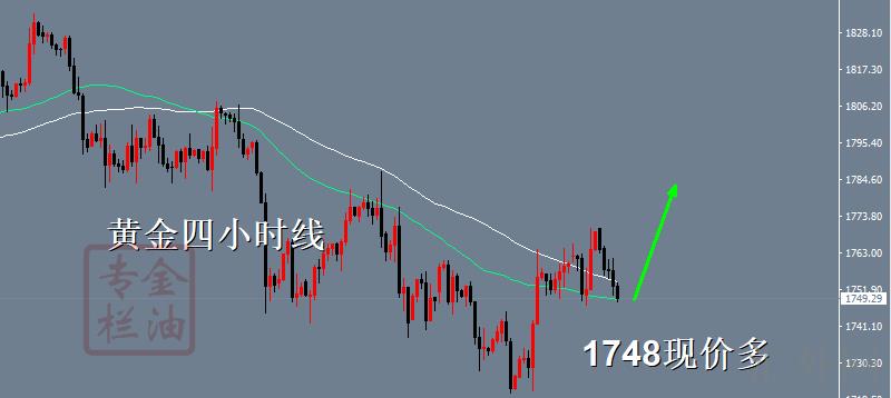 黄金四小时k线显著在50均线上方,未能突破均线,k线任然在均线上方,同期1745是多空博弈必争之地,当前黄金价格持稳1745上方,那就自然依旧看涨的,除非突破了,那就是顺势空,就这么简单