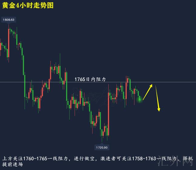 1760-1765左右买跌,止损5美金,计划看1740-1750左右;激进派可依托1758-1763一线压力,择机提早进场;