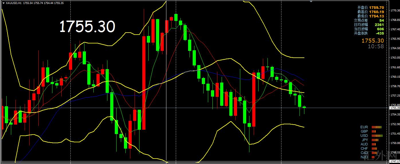 昨日黄金区间震荡,上方遇阻1770,夜里以下回撤支撑1748,日K线收得一带有下影线的阴线,收盘在均线带之间,显示震荡状态。从上半周黄金震荡的结构来说,短线市场提早进入了紧俏情绪下的震荡状态,以面对这周非农就业报告的影响,而之所以会提早进入震荡状态,或许与今日夜里ADP小非农报告将发布的影响相关,这也加大了今夜ADP小非农报告作为下半周非农就业报告预计的重要参考。以当前黄金处在均线带夹层中,短线行情略显偏空,但临时也没有执行清晰的方向选择,这也或许会依据夜里小非农报告的状况来选择下半周的方向。
