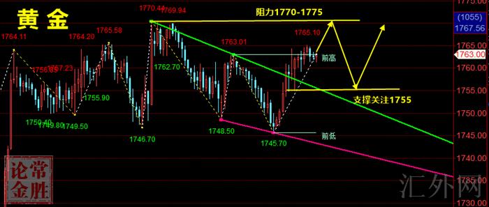 昨日早间常胜本人也是早间在1758直接给出了空单策略,完美在1750止盈出局,随后再1748一线开仓进多,夜里按计划到达1760一线止盈计划,常胜给出的多单盈利位置是在1760一线!今天日内的思路完全预测先跌后涨!昨晚ADP有好处空头黄金,但是黄金却没有走跌而是保持回弹上升趋势!后市压力依旧是注意1770-1765这个位置!击穿将看1800一线!