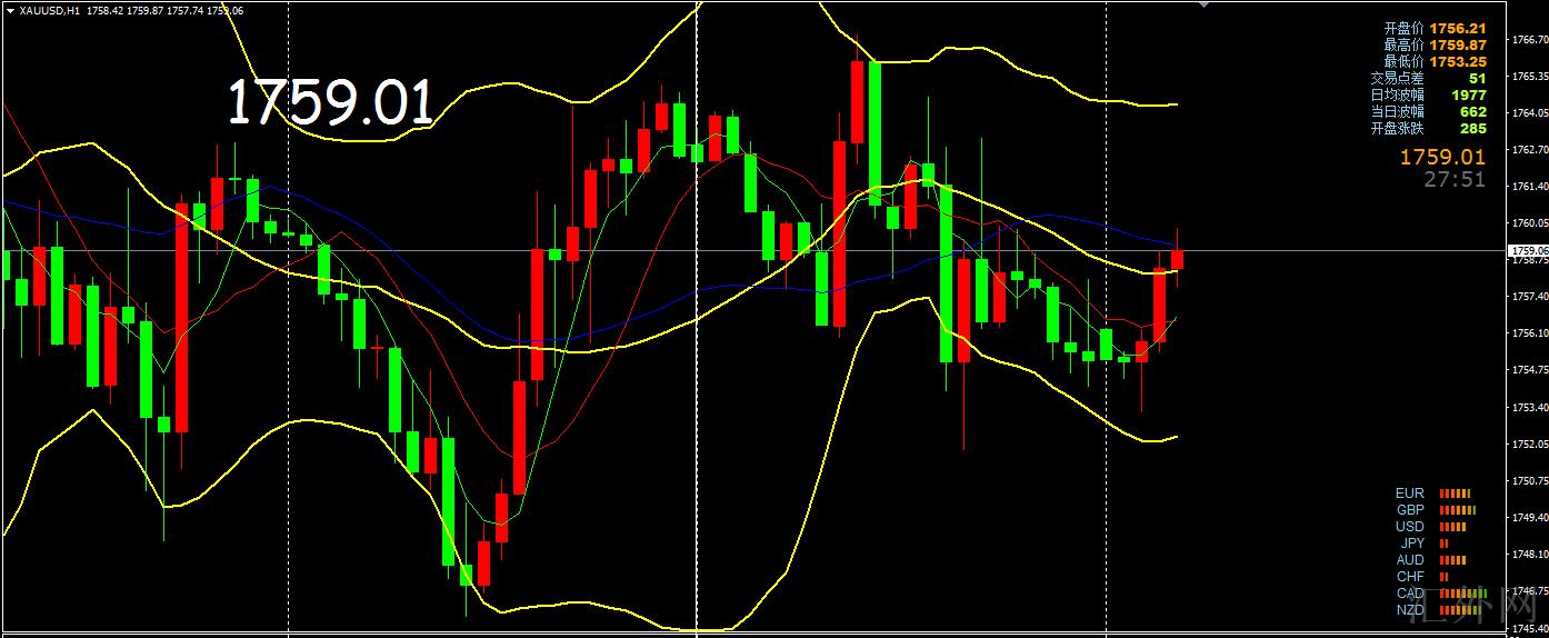 昨日保持区间缩减震荡,最低1751左右启稳摸高到1767.7左右遇阻,非农就业报告发布前的收敛震荡。短线等候报告刺激迈出单边,日K线收盘小阴K线,从当前日K线形态来说。这周节奏是阴阳循环震荡拉锯,并没有单边方向。钝化震荡当中,等候非农就业报告刺激打破。昨日上探后未破高,今日持续着重注意1745-1771区间边沿点的击穿。突破决定短线保持方向。