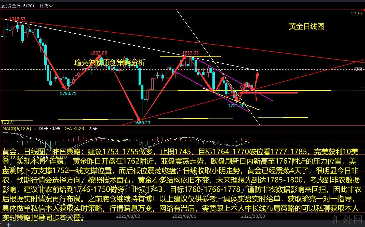 黄金,日K图,昨日策略:推荐1753-1755买涨,止损1745,计划1764-1770突破看1777-1785,完美获利10美金,达到这周4连赢, 黄金昨日开盘在1762左右,早盘震荡行情,欧盘创下日间高峰到1767左右的阻力位置,美盘试探以下支撑1752一线支撑点置,而后低点震荡收盘,日K线收取小阴行情。黄金已经震荡4日了,很显著今日非农,预计行情会选择方向,依照技术分析看,黄金看涨结构依旧不变,将来理想先到达1785-1800,顾虑到非农就业数据作用,推荐非农就业数据前给到1746-1750买涨,止损1743,计划1760-1766-1778,谨防非农就业数据作用来回扫,所以非农就业数据后依据实时情形再行布局。以前底仓持续持有博!以上推荐仅供参考,具体实盘实时给单,获取瑜亮一对一指导,具体做单私信本人获取实时策略,行情瞬息万变,网络有落后,需求跟上本人中长线布局策略的可以私聊获取本人实时策略指导同步本人圈。