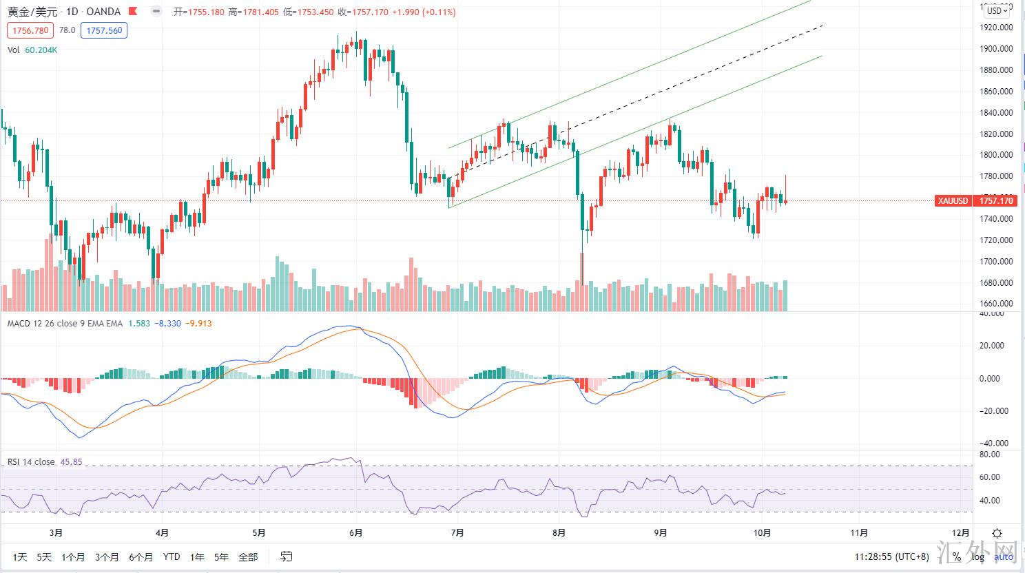 市场预计削减购债的时间延后了,所以这助推了黄金的上涨,但是缩紧的大趋势不变,黄金的状况始终是要承受这个大趋势影响的,这个东西我以前也讲过,当下对黄金影响最大的基本分析就是美联储的削减购债了,削减购债和加息一样均为缩紧货币政策,大家可以回看一下2017年12月份美联储加息前后的黄金行情,在加息前后,黄金迈出了卖预计买真相的行情,作为和加息一样的缩紧举措,削减购债前后大约率也是这么走,所以我一直坚持觉得,黄金在削减落地以前不会有什么太耀眼的状况,而等到削减正式实行后面,特别是明年,黄金才会面临扭转暴发期!