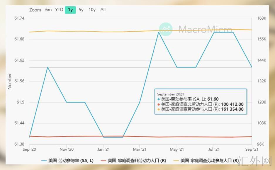 依据非农具体数据我们可以目睹,其实9月相较8月的失业率下滑了0.4个百分点,假使0.4个百分点的人均为寻到工作的人的话,那就业人口应当能够高达50万以上,但事实上并没有那么多,这也就代表着,会有一部分撤出了就业市场,不再被计入到失业率当中。