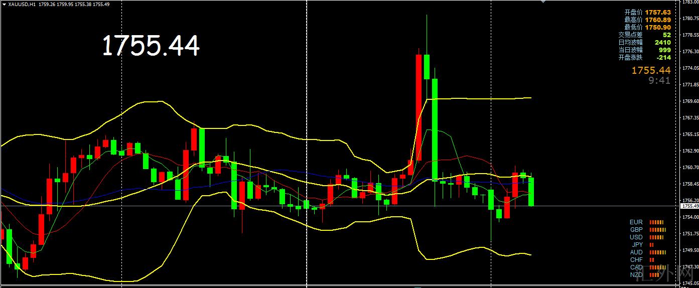 日K线结构上,上星期五非农行情冲顶回调,无论是技术上,依旧基本分析上均为说得以往的。基本分析上,非农差于预计依旧略显意想不到的,行情短时消化报告有助于而显现推涨回弹,但因市场对于将来美联储削减购债以及加息的预计更强烈,也就实施行情冲顶回调,反倒报告给卖方补仓的可能。技术上,日移动均线交叉朝下,整体状态任然是看空的,星期五非农就业数据后虽有推涨,但也按预计在40日K线1780左右遇阻,显示目前市场尽管情绪层面很不平稳,但任然依旧遵循适当的技术行情预计的。当前黄金处在短均线带1760上下震荡,短线行情仍有或许反复的上下争夺,这周初预计行情大约率将对上星期五的“过山车”式行情执行消化,且大约率会有保持或许,即短暂回弹,再次证实阻力后,行情重归偏空震荡。