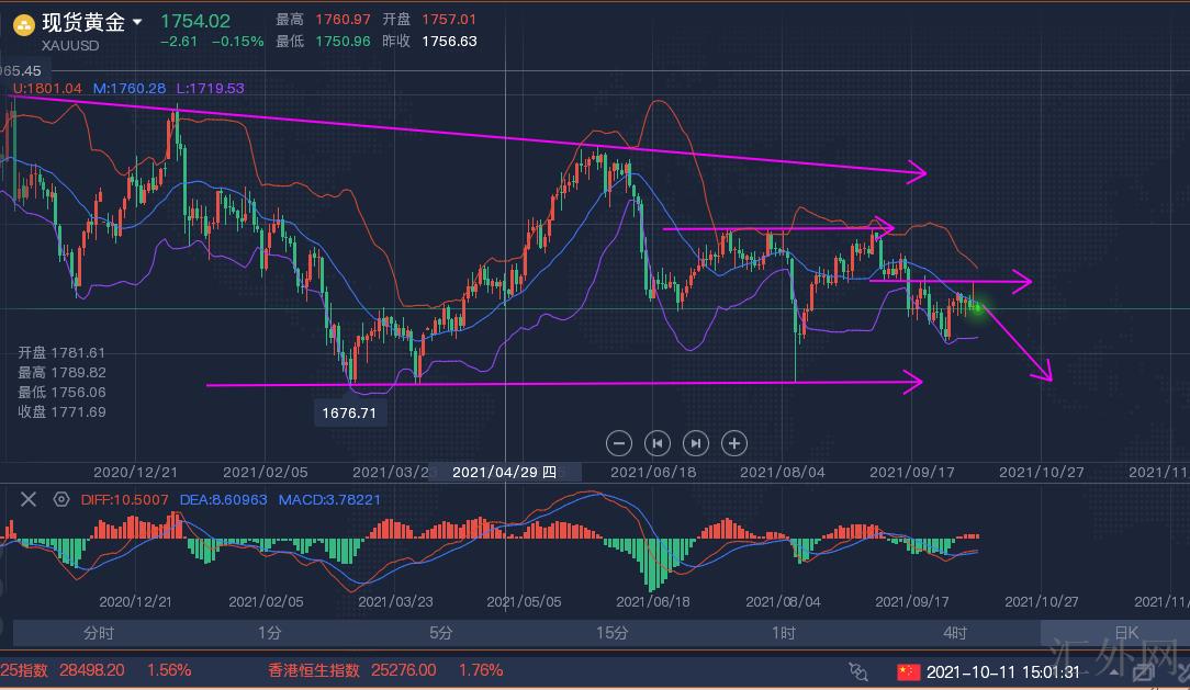 黄金层面、星期五受非农差于预计影响,黄金打破保持一周整理区间,最高刷新1781左右,但行情未能保持一举击穿1787前高阻力,反而冲顶回调,凌晨弱势震荡最终日K线以长上影线十字星收盘。星期五未能借助非农大幅有好处多头影响保持走高虚晃一枪,足够显示黄金买方上涨无力,后市任然卖方统治市场持续下探几率比较大。从形态上来说、黄金接连整理,但反抽未破核心抑制,任然处在下探趋势中,而星期五凌晨偏空整理,今日走保持回调机会比较大,所以今日依托早盘高位1760-61空即可,以下注意1745-46支撑,一旦形成有效朝下击穿将又一次打开以下空间。