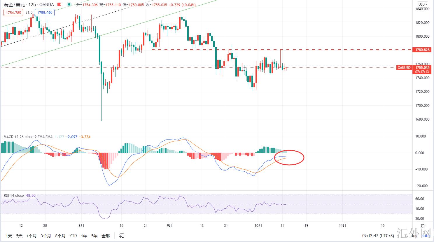 但是这次不一样,这次黄金没有到底,连4小时的底都没,所以这次黄金一旦下挫肯定是有新低显现的,耐心等候12小时的MACD快慢线在0轴以下的死叉吧,这是唯一的条件,满足后面不管你是前期有空单在手,依旧直接进场追空,就十拿九稳了,计划1700!