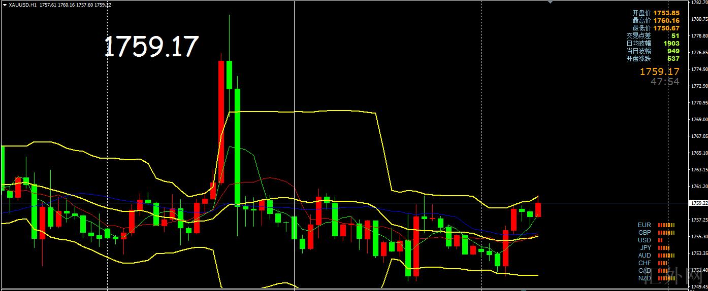 黄金昨日(10月11号)弱势震荡收盘小阴十字K线,最高回弹1760遇阻,最低回测1750.整体保持在在此之前的区域内弱势震荡运行,日K线上星期五冲顶回调后,昨日保持收低震荡。