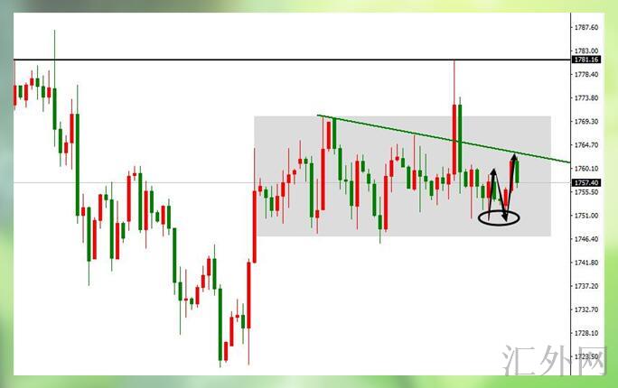我图中给的一波趋势阻力尽管是在62,但耐不住它或许由于技术做多盘过量回弹至水平阻力1765,所以你们可以把65当作是一个信号,不管是已经有空准备加仓的,依旧说打算初始进场的,这个位置都需求你们关注,但依旧那句话,抱着短线目的进场的就去看50,多的一毛钱也没必要去拿。