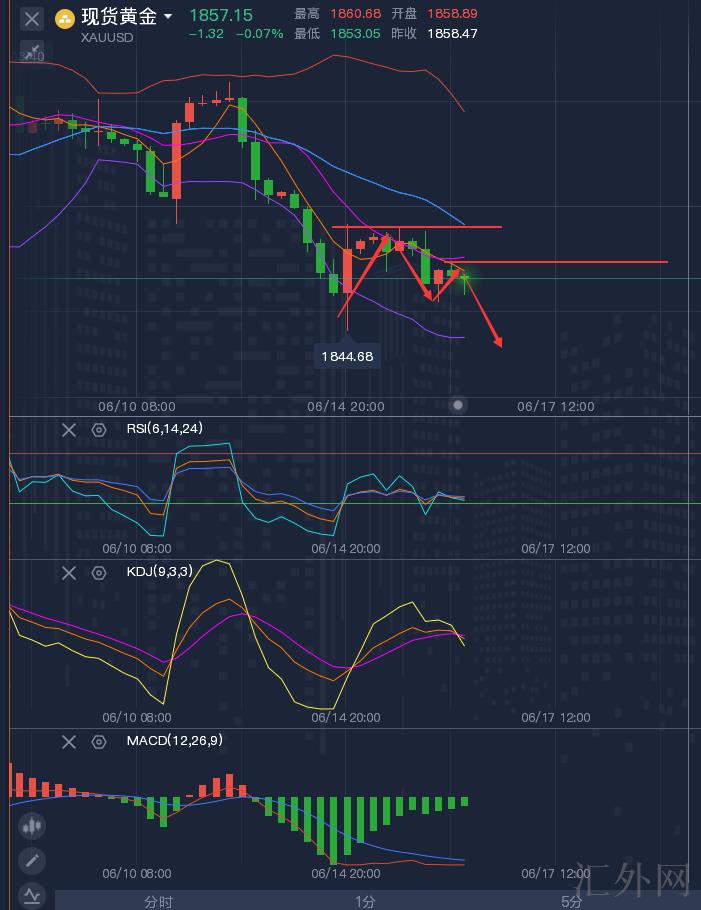 6.16黄金策略:1、激进派1860买跌;2、稳健者1868-1870买跌!