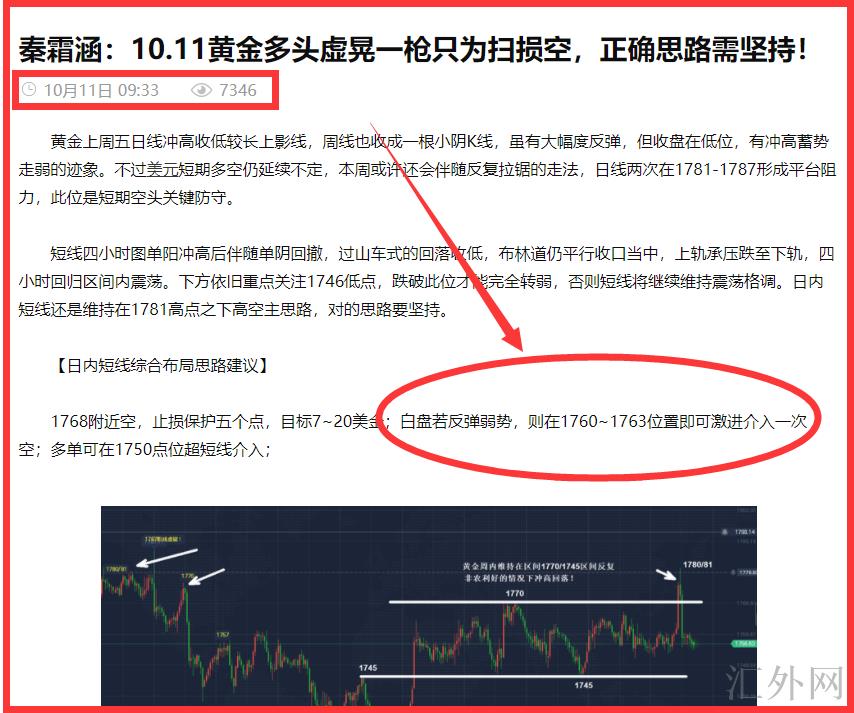 终于错了一次!如下图上周星期五非农就业报告上,黄金行情我看空,推荐1768点位开空,行情无意中破高扫损,最多冲到1780上方位置,空单扫损的同期也错过了多单利润,今日非农就业报告布局比较失利!然而也导致一天失利而已,纵观最近交易日,损单近无,假使你关注我一波时间了,就知道我这边精准率有多恐怖!