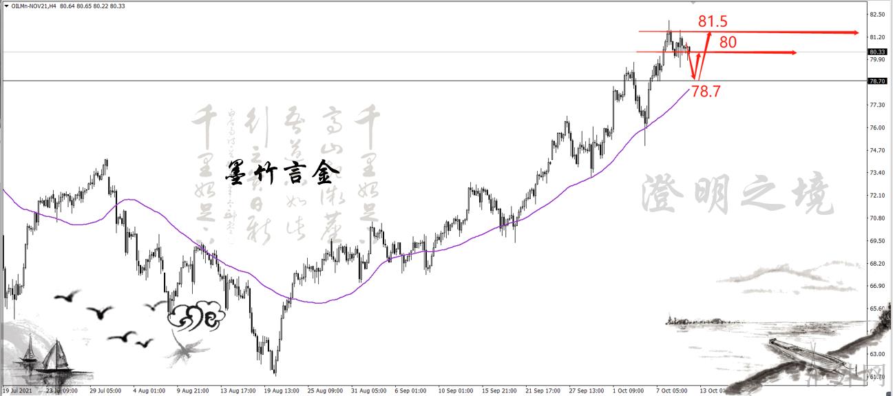 回顾一下昨日的策略逻辑吧,昨日文中给出80.3买涨,在美盘调动前最高打击到81.1美元左右,距离81.5仅一线之差。美盘的调动中,文中提示挂单79多未能顺遂入场,因均线攀升,支撑自然在短线抬升。文章时效性有限,便没有做更深一步更新。