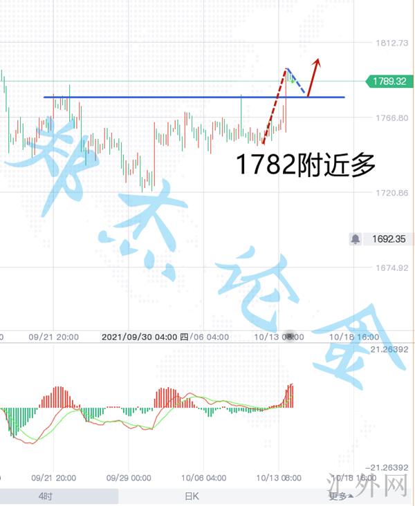 黄金1782左右多,止损1777,计划1792,1798